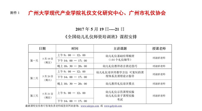 2017年5月19日-21日《全國幼兒禮儀師資培訓班》招生簡章