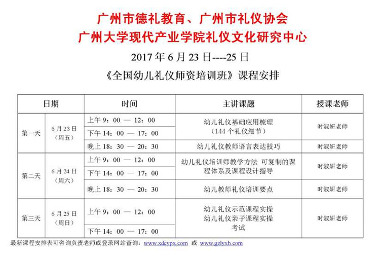 2017年6月23日-25日《全國幼兒禮儀師資培訓班》招生簡章