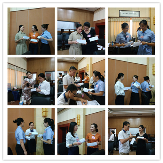 來自廣西、深圳、佛山、珠海、河(he)源(yuan)等(deng)多(duo)地(di)的(de)學(xue)員(yuan),帶(dai)著(zhe)滿(man)腔(qiang)熱(re)情(qing)來(lai)參(can)加(jia)為(wei)期(qi)三(san)天(tian)兩(liang)晚(wan)的(de)培(pei)訓(xun)學(xue)習(xi),首(shou)天(tian)課(ke)程(cheng),學(xue)員(yuan)們(men)早(zao)早(zao)來(lai)到(dao)課(ke)室(shi)參(can)加(jia)開(kai)班(ban)典(dian)禮(li)。時(shi)淑(shu)妍(yan)老(lao)師(shi)帶(dai)領(ling)大(da)家(jia)莊(zhuang)嚴(yan)宣(xuan)誓(shi),作(zuo)為(wei)禮(li)儀(yi)培(pei)訓(xun)師(shi),堅(jian)持(chi)為(wei)弘(hong)揚(yang)發(fa)展(zhan)、傳承禮儀文化,不斷努力。我們謹記使命,肩負責任,砥礪前行。