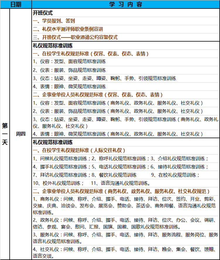 著裝要求: 培訓期間,學員需全程著正裝(職業裝)