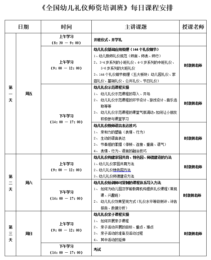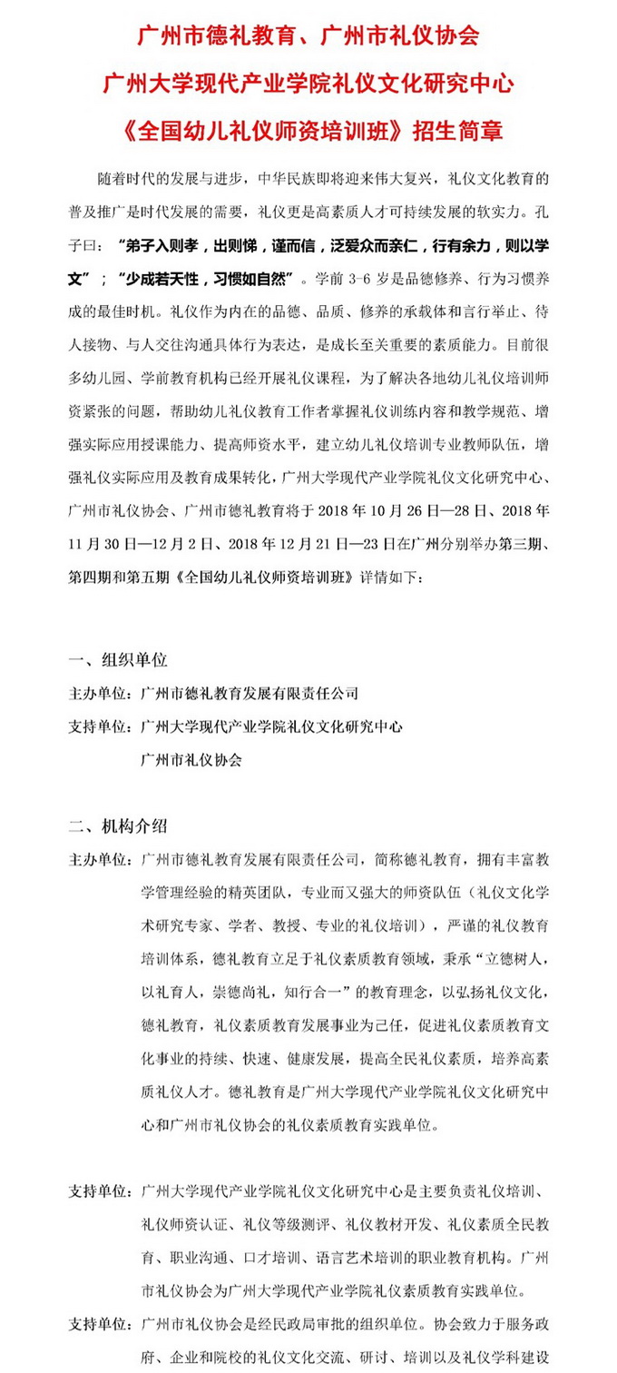 《全國幼兒禮儀師資培訓班》招生簡章