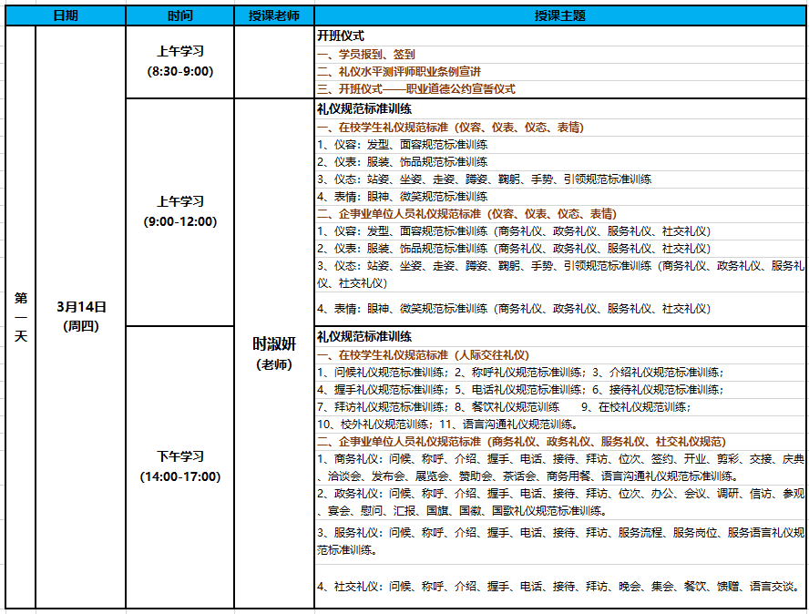 著裝要求: 培訓期間,學員需全程著正裝(職業裝)