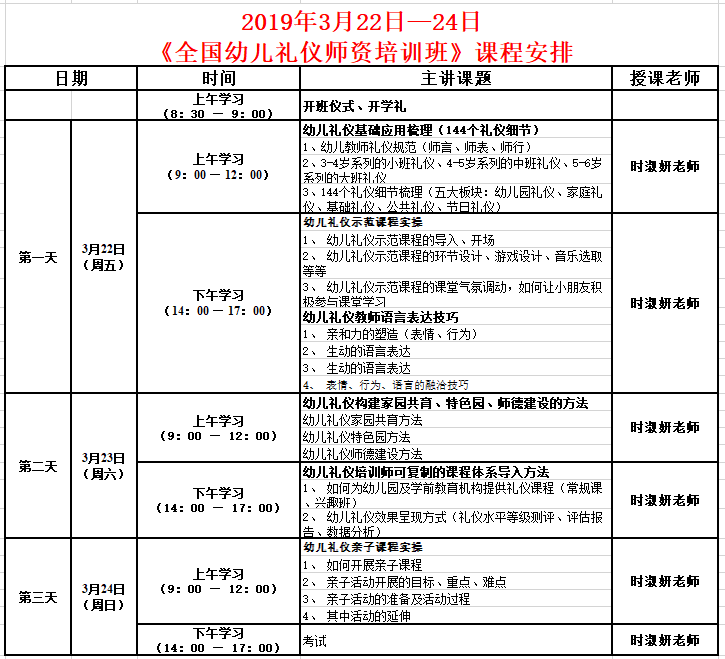 2019年3月22日-24日《全國幼兒禮儀師資培訓班》招生簡章
