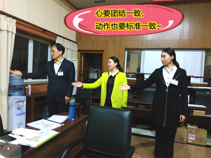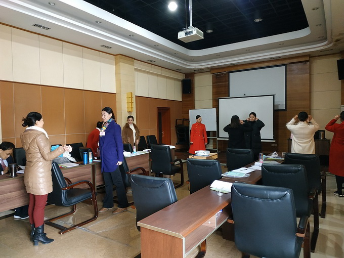 晚間學習時間段,由時淑妍老師講授《禮儀操編排教學》課程。在禮儀操編排教學課程開始前,時淑妍老師再次從禮儀行為規範:站姿、坐姿、走姿、蹲姿、指引、握手、遞接物品、等禮儀細節進行係統的梳理和指導。作為一名禮儀培訓師,首先要把自己禮儀行為規範標準化、細節化,並形成日常的生活習慣,才能在今後開展培訓工作中,做到標杆作用!
