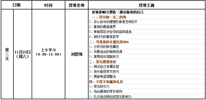 著裝要求: 培訓期間,學員需全程著正裝(職業裝)。