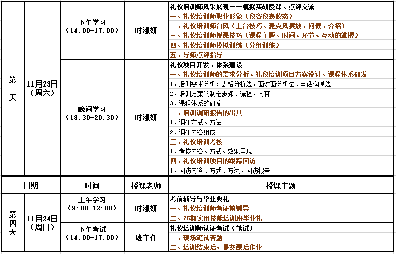 2019年11月21日-24日第75期《全國禮儀師資培訓(實用技能)班》招生簡章