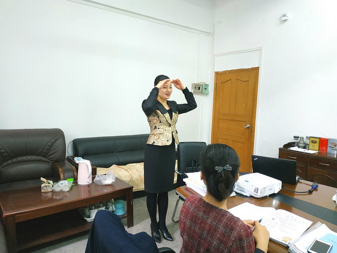 下午時間段,時淑妍老師帶領大家觀看了幼兒禮儀示範課,就幼兒禮儀素質課程如何導入、開場、課(ke)堂(tang)氣(qi)氛(fen)營(ying)造(zao)等(deng)多(duo)方(fang)麵(mian)進(jin)行(xing)詳(xiang)細(xi)講(jiang)授(shou),並(bing)進(jin)行(xing)了(le)幼(you)兒(er)禮(li)儀(yi)課(ke)程(cheng)實(shi)操(cao)。緊(jin)接(jie)著(zhe),時(shi)淑(shu)妍(yan)老(lao)師(shi)還(hai)為(wei)大(da)家(jia)講(jiang)授(shou)了(le)幼(you)兒(er)禮(li)儀(yi)教(jiao)師(shi)的(de)語(yu)言(yan)表(biao)達(da)技(ji)巧(qiao)。
