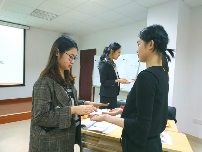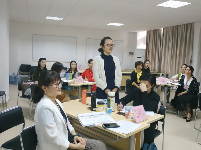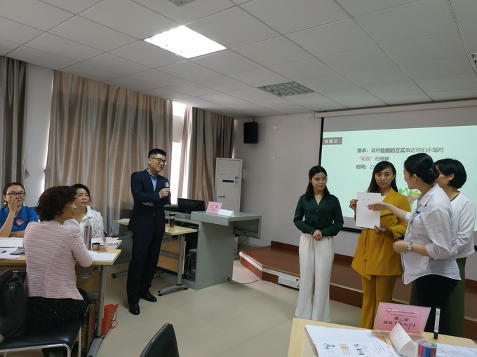 禮儀師資培訓(實用技能)班第三天學習時間段,王旭老師給學員們講授《以成果為導向的禮儀教學》――職業禮儀培訓師教學理念、教學方法、教jiao學xue工gong具ju。受shou企qi業ye邀yao請qing做zuo培pei訓xun時shi,往wang往wang最zui讓rang老lao師shi們men為wei難nan的de就jiu是shi對dui於yu教jiao學xue方fang法fa的de製zhi定ding和he設she計ji培pei訓xun方fang案an,王wang旭xu老lao師shi給gei大da家jia帶dai來lai了le關guan鍵jian實shi用yong的de一yi課ke。王wang旭xu老lao師shi以yi“破冰”遊戲開始,快速營造學習氛圍,讓學員的注意力集中在課堂上,以飽滿的狀態積極投入到課程學習中。