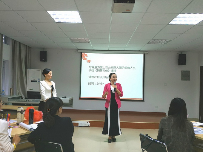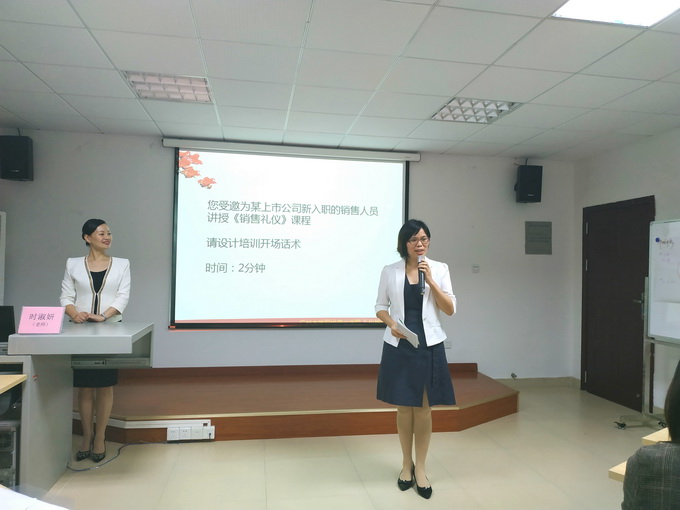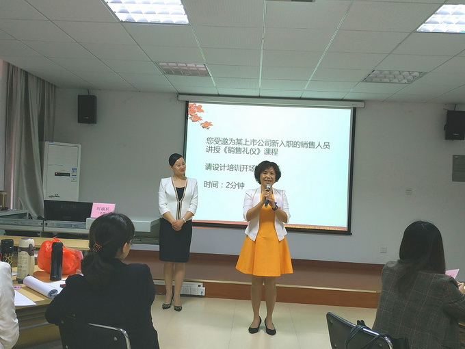 下午課程學習,由時淑妍老師為大家講授《禮儀培訓師的實用培訓技巧》。作為一名職業的禮儀培訓師,要注重職業的形象、台風、語言表達等細節培訓技巧。如何與受訓方進行溝通,如何設計培訓方案、如何開展禮儀培訓工作,時淑妍老師都逐一傳授經驗和方法技巧給學員們。