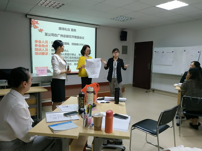 日間課程學習中,由時老師給大家講述禮儀概述及其分類梳理、企事業單位禮儀培訓分類梳理。同時,時老師為學員們講授了禮儀培訓師的形象塑造,並梳理了各類禮儀知識;教大家有條理、分類別來進行講課。時淑妍老師每期的課程精彩紛呈,用多種教學方式與學員互動教學,學員們受益匪淺。