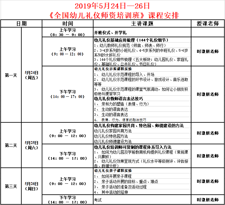 2019年5月24日-26日《全國幼兒禮儀師資培訓班》招生簡章