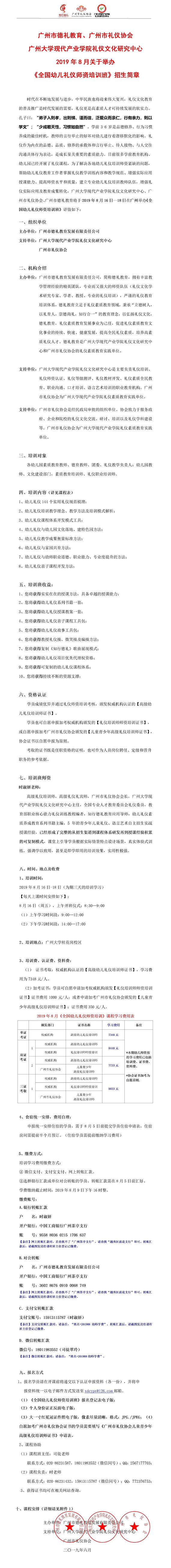 2019年8月16日-18日《全國幼兒禮儀師資培訓班》招生簡章