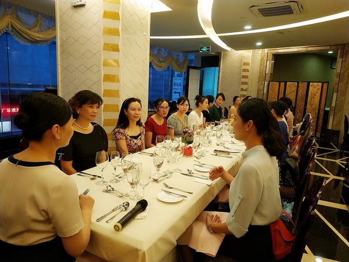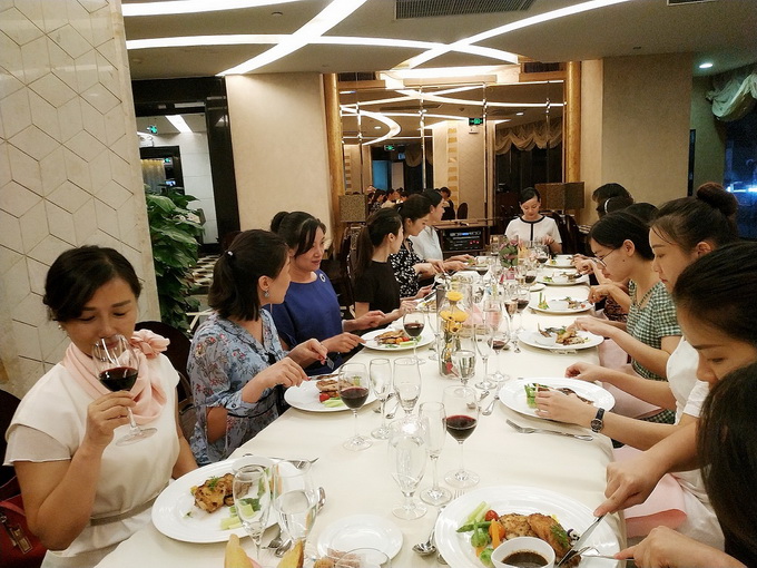 第四天晚間課程,由時淑妍老師主講《西餐禮儀》課程,在酒店西餐廳帶領學員們實操西餐禮儀。