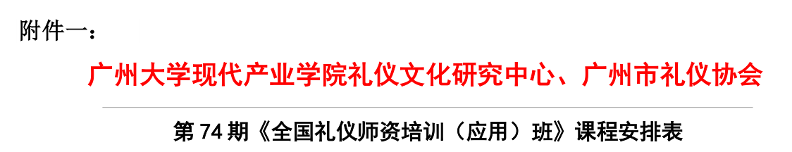 2019年9月20日-22日第74期《全國禮儀師資培訓(應用)班》招生簡章
