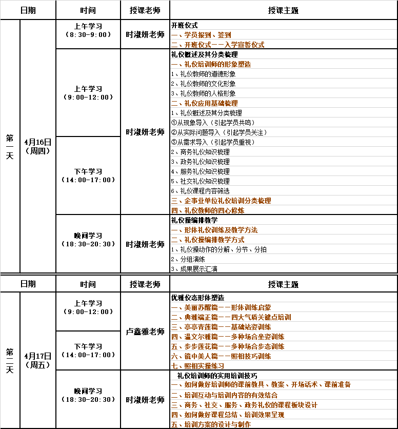 2020年4月16日- 19日第76期《全國禮儀師資培訓(應用)班》招生簡章