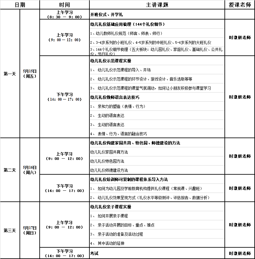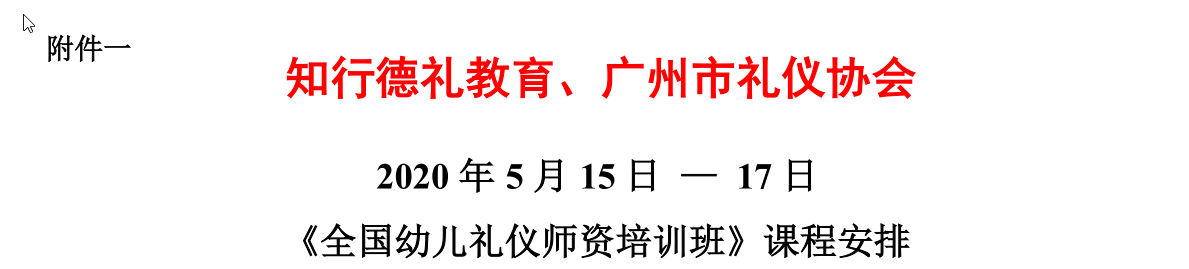 2020年5月15日-17日《全國幼兒禮儀師資培訓班》招生簡章