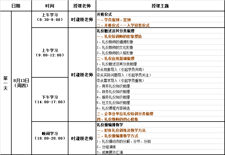 為了提高全民素質、促進社會的文明進步、推廣普及禮儀文化;培pei養yang優you秀xiu的de禮li儀yi教jiao育yu培pei訓xun工gong作zuo者zhe,規gui範fan教jiao學xue內nei容rong和he教jiao學xue方fang法fa,增zeng強qiang授shou課ke能neng力li,提ti高gao禮li儀yi師shi資zi水shui平ping和he授shou課ke質zhi量liang,建jian立li禮li儀yi教jiao學xue培pei訓xun專zhuan業ye教jiao師shi隊dui伍wu,廣guang州zhou市shi德de禮li教jiao育yu、廣州市禮儀協會將於2020年8月13日至15日在廣州舉辦《禮儀師資培訓應用班》。詳情如下: