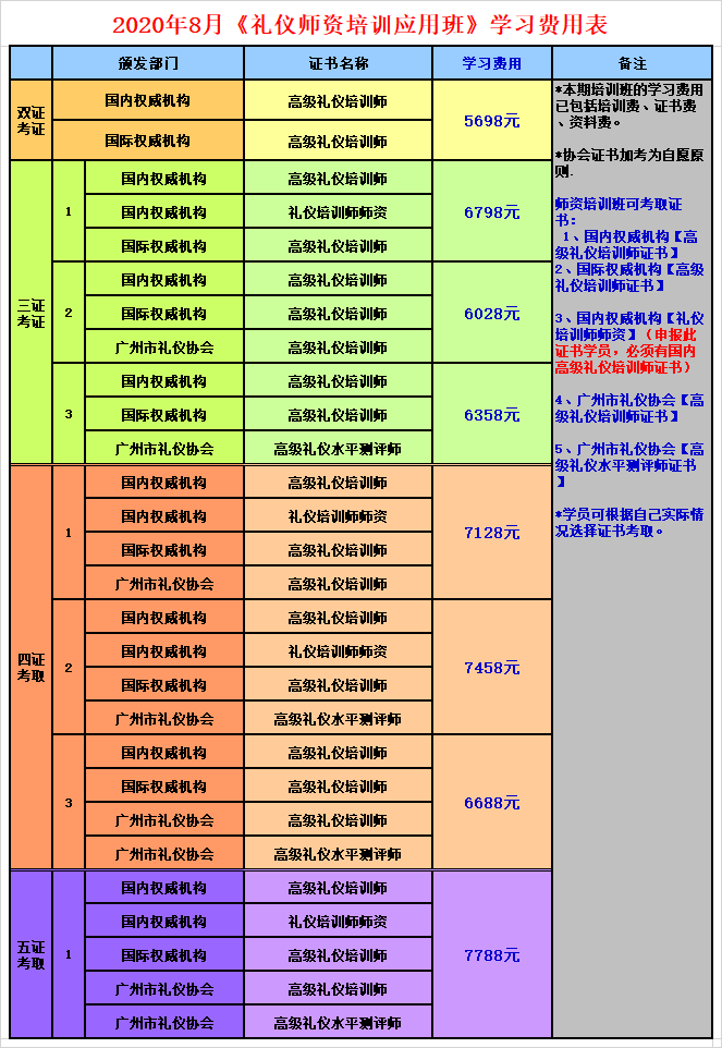 ② 廣州市禮儀協會頒發的【高級禮儀培訓師證書】,證書費300元/人。
