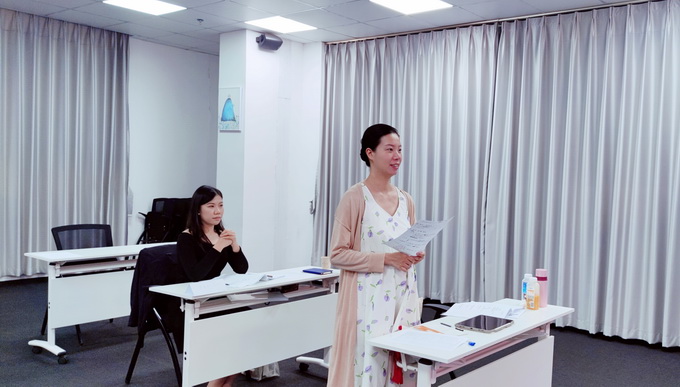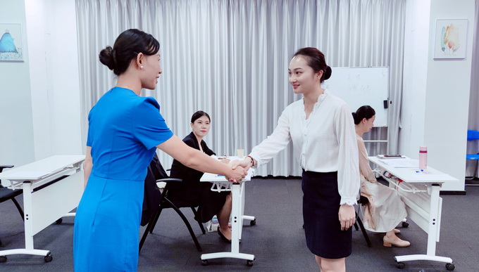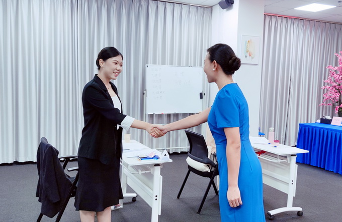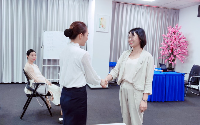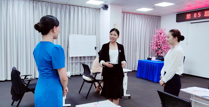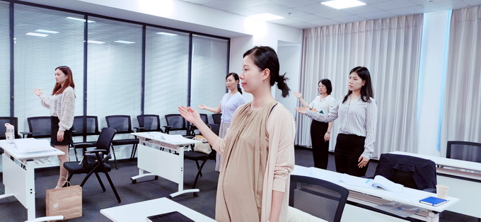 時shi淑shu妍yan老lao師shi為wei學xue員yuan們men講jiang授shou了le作zuo為wei禮li儀yi培pei訓xun師shi職zhi業ye風feng采cai的de禮li儀yi細xi節jie,並bing讓rang學xue員yuan們men逐zhu一yi練lian習xi,通tong過guo指zhi導dao力li求qiu讓rang每mei位wei學xue員yuan都dou能neng盡jin快kuai掌zhang握wo禮li儀yi培pei訓xun師shi的de現xian場chang授shou課ke的de風feng采cai及ji技ji巧qiao。