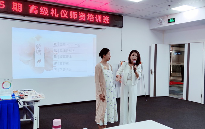 接著,龐老師教會學員如何運用穿衣技巧顯高顯瘦,揚長避短;職業禮儀培訓師如何塑造專業形象以及衣櫥管理等禮儀知識。