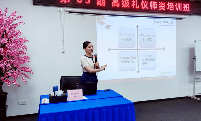 下午學習時間段,時淑妍老師繼續給學員們講授《禮儀應用基礎梳理》課程。