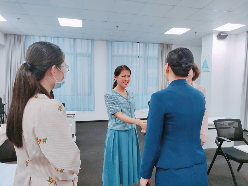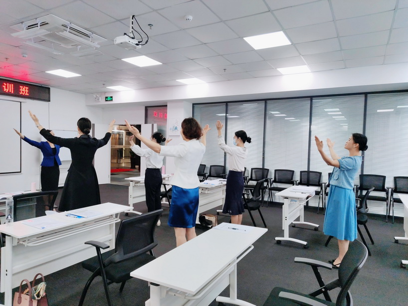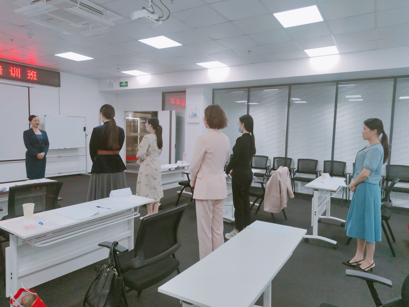 時淑妍老師為學員們講授了作為禮儀培訓師職業風采的禮儀細節,並讓學員們逐一練習。