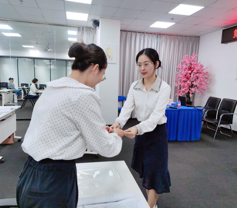 同(tong)時(shi),全(quan)體(ti)學(xue)員(yuan)參(can)加(jia)了(le)禮(li)儀(yi)培(pei)訓(xun)師(shi)現(xian)場(chang)測(ce)評(ping)。時(shi)淑(shu)妍(yan)老(lao)師(shi)為(wei)學(xue)員(yuan)們(men)一(yi)對(dui)一(yi)進(jin)行(xing)點(dian)評(ping),作(zuo)為(wei)一(yi)名(ming)禮(li)儀(yi)培(pei)訓(xun)師(shi),自(zi)身(shen)的(de)禮(li)儀(yi)細(xi)節(jie)不(bu)容(rong)小(xiao)覷(qu),通(tong)過(guo)指(zhi)導(dao)力(li)求(qiu)讓(rang)每(mei)位(wei)學(xue)員(yuan)都(dou)能(neng)盡(jin)快(kuai)掌(zhang)握(wo)禮(li)儀(yi)培(pei)訓(xun)師(shi)的(de)現(xian)場(chang)授(shou)課(ke)技(ji)巧(qiao)。