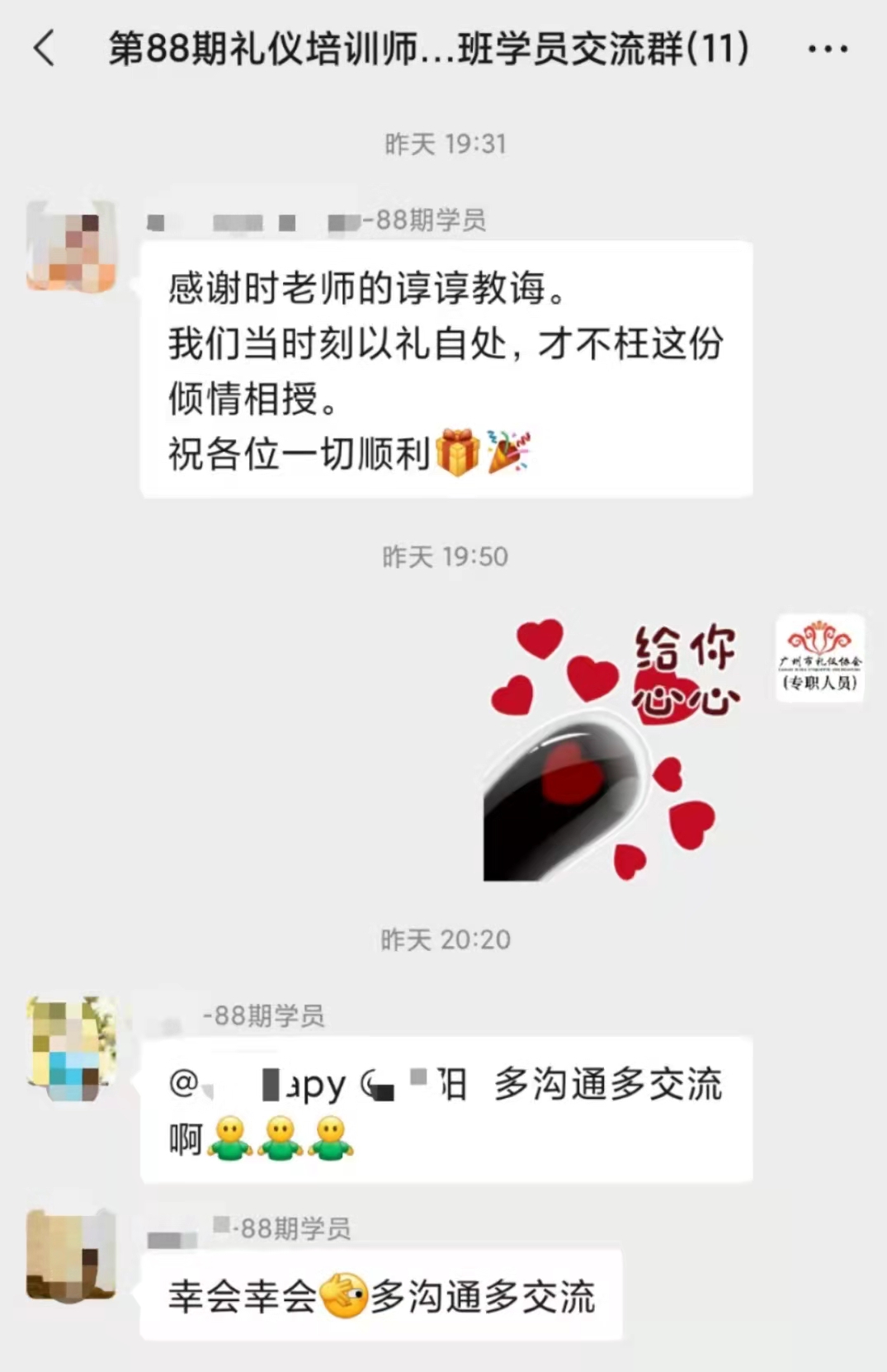 suiranbenqishizipeixunxuexiyijingjieshu,danshixiangxingeweiliyipeixunshidounenggouzaijinhoudeliyipeixunjiaoxuezhongxueyizhiyong,jiangzhuanyehuadezhishitixichuanshougeigengduodexueyuan,weichuancheng、弘揚、發展禮儀文化做出自己的貢獻!