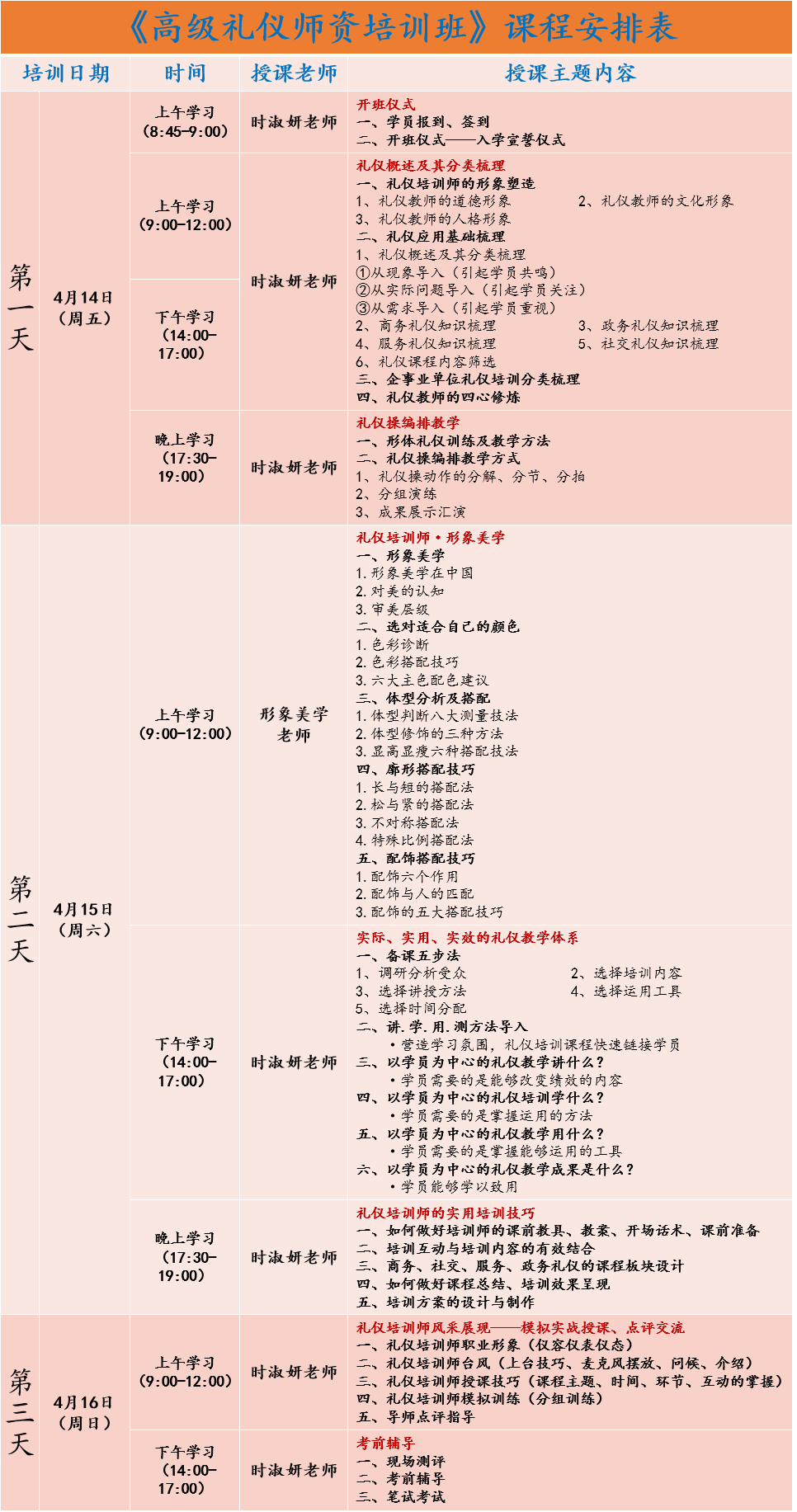 2023年4月14日-16日《高級禮儀師資培訓班》招生簡章