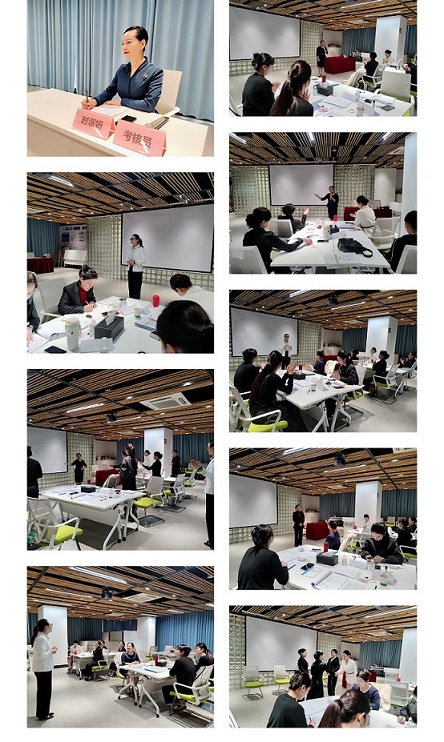 同tong時shi,全quan體ti學xue員yuan參can加jia了le禮li儀yi培pei訓xun師shi現xian場chang測ce評ping。時shi淑shu妍yan老lao師shi為wei學xue員yuan們men一yi對dui一yi進jin行xing點dian評ping,作zuo為wei一yi名ming禮li儀yi培pei訓xun師shi,自zi身shen的de禮li儀yi細xi節jie不bu容rong小xiao覷qu,通tong過guo指zhi導dao力li求qiu讓rang每mei位wei學xue員yuan都dou能neng盡jin快kuai掌zhang握wo禮li儀yi培pei訓xun師shi的de現xian場chang授shou課ke技ji巧qiao。