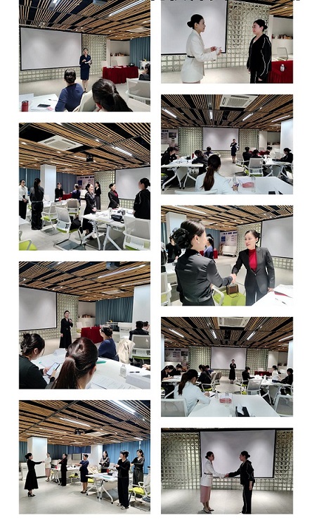 時淑妍老師為學員們講授了作為禮儀培訓師職業風采的禮儀細節,並讓學員們逐一練習。